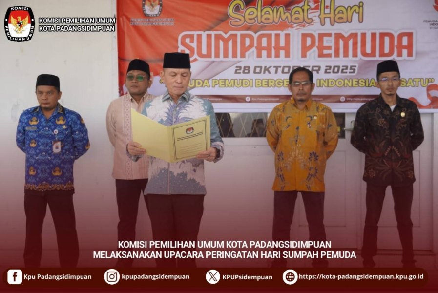 Sebagai Pembina Upacara, Ketua KPU Kota Padangsidimpuan (Tagor Dumora) menyampaikan amanat kepada seluruh pegawai sekretariat “Kita semua mengetahui bahwa Sumpah Pemuda yang diikrarkan pada 28 Oktober 1928 menjadi simbol kebangkitan dan kesadaran nasional. Para pemuda kala itu menyadari bahwa hanya dengan persatuanlah bangsa ini bisa mencapai kemerdekaan, sekarang perjuangan kita memang berbeda, kita tidak lagi melawan penjajah, tetapi menghadapi tantangan globalisasi, mengimbangi kemajuan teknologi yang sangat pesat dan perubahan sosial yang begitu cepat”