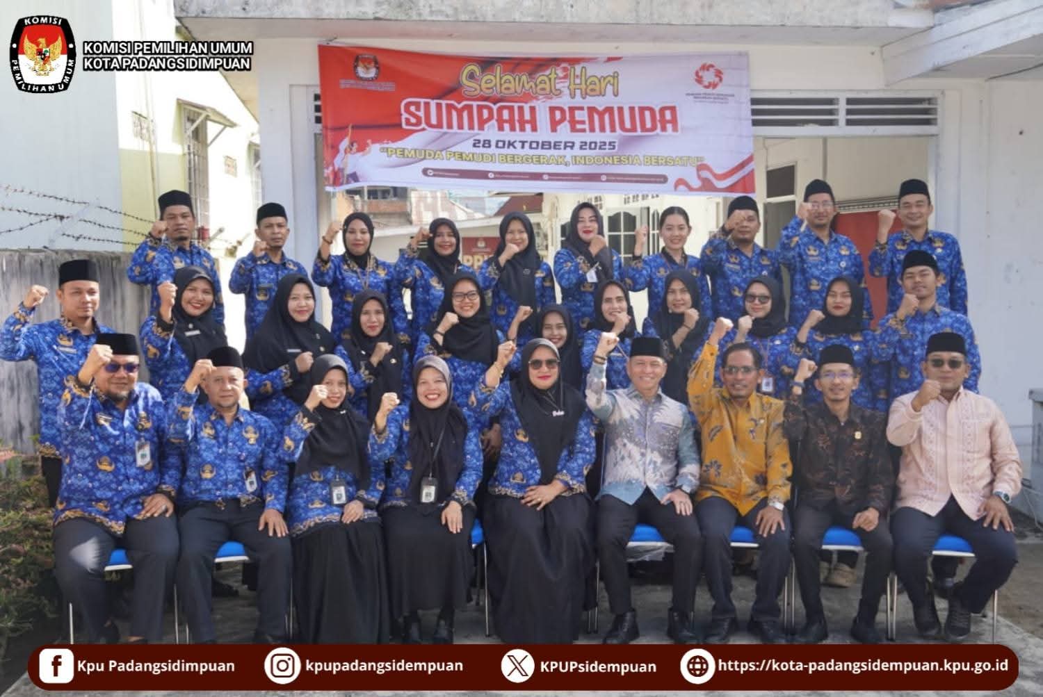 #TemanPemilih, KPU Kota Padangsidimpuan menyelenggarakan Upacara Peringatan Hari Sumpah Pemuda ke-97 Tahun 2025 dengan tema “Pemuda Pemudi Bergerak Indonesia Bersatu”. Selasa (28/10/2025)