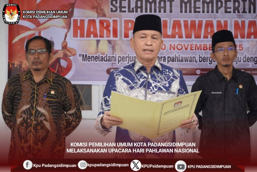 #TemanPemilih, KPU Kota Padangsidimpuan melaksanakan upacara memperingati Hari Pahlawan Nasional, Senin 10 November 2025 di halaman kantor KPU Kota Padangsidimpuan.