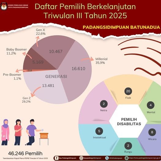 Inilah infografis terkait hasil Pemutakhiran Data Pemilih Berkelanjutan (PDPB) Tingkat Kecamatan Padangsidimpuan Batunadua Triwulan III Tahun 2025.