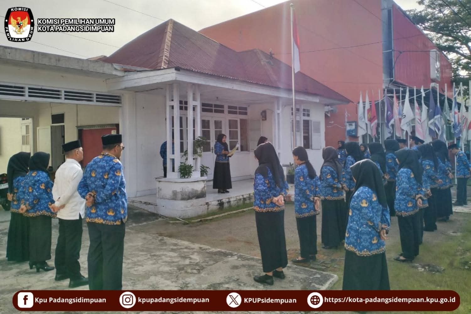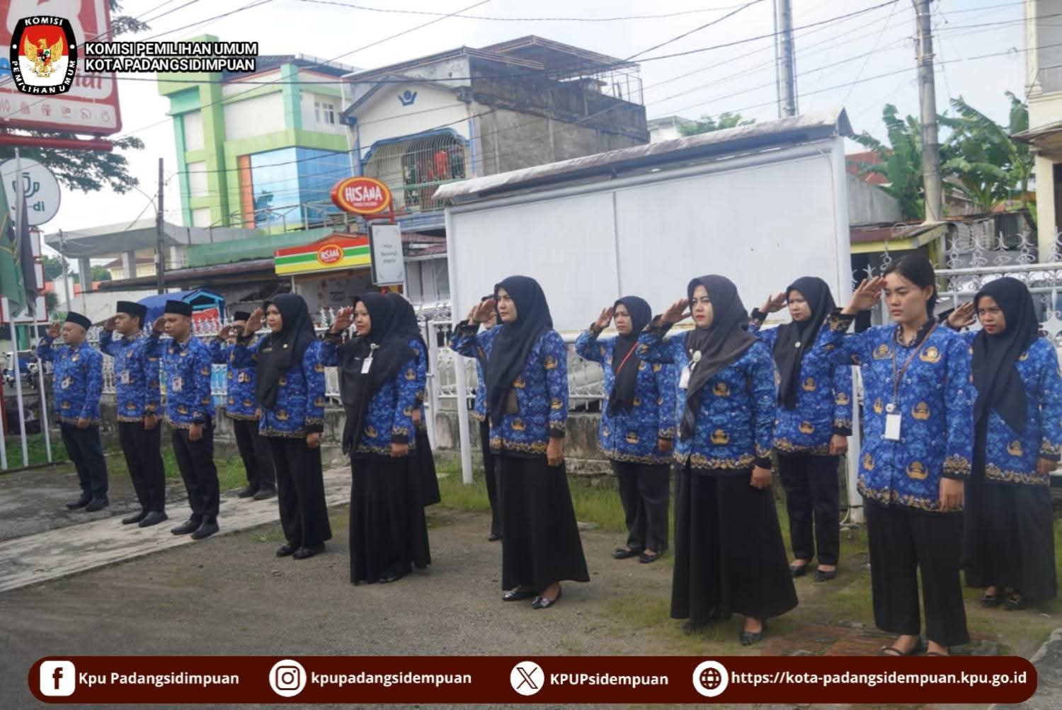 Dalam kegiatan tersebut, Pembina Upacara adalah Sekretaris KPU Kota Padangsidimpuan Deka Ria Murti Lubis Pemimpin Upacara Kasubbag Keuangan Umum dan Logistik Sutan, serta diikuti oleh peserta upacara seluruh ASN di Lingkungan Sekretariat Komisi Pemilihan Umum Kota Padangsidimpuan.