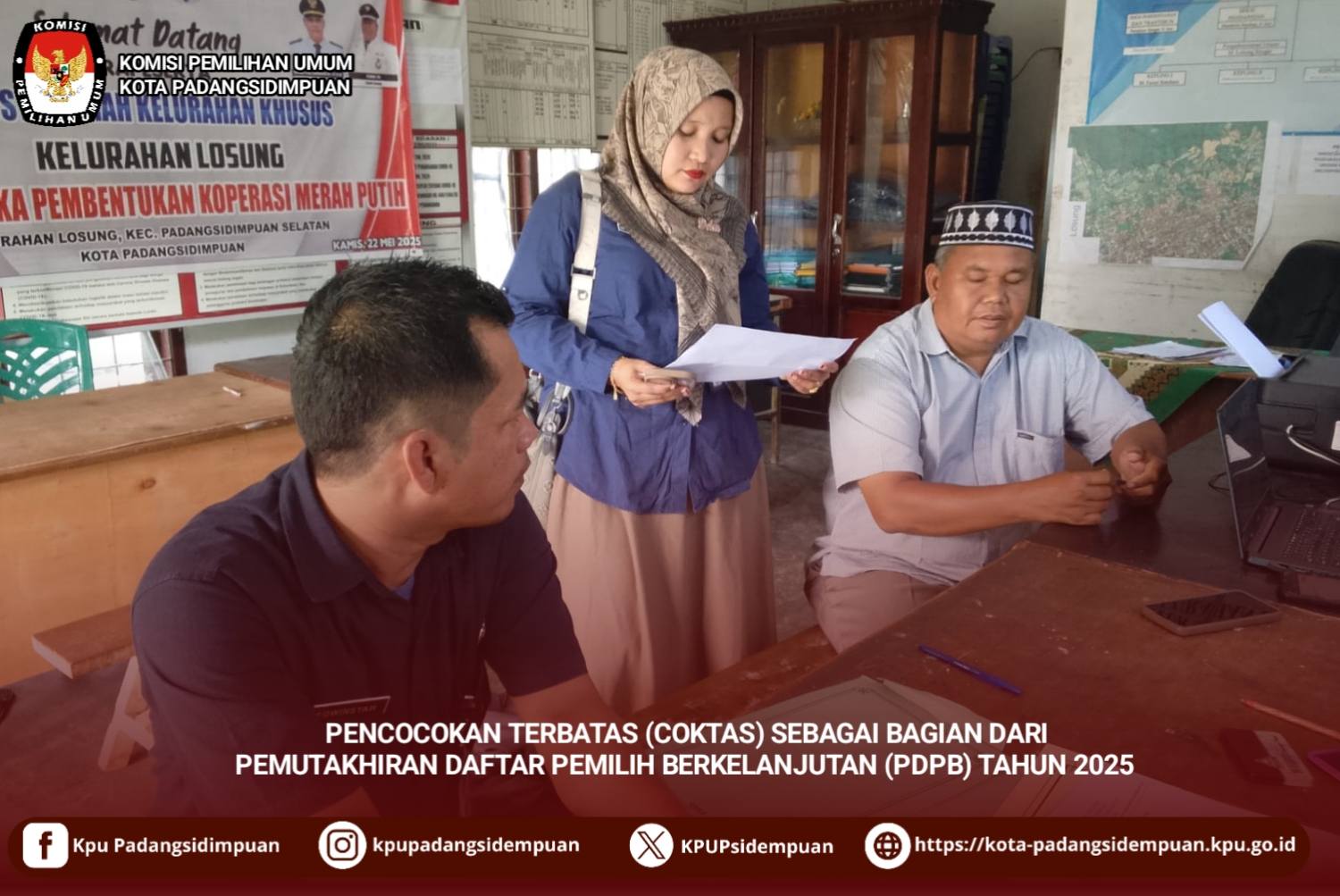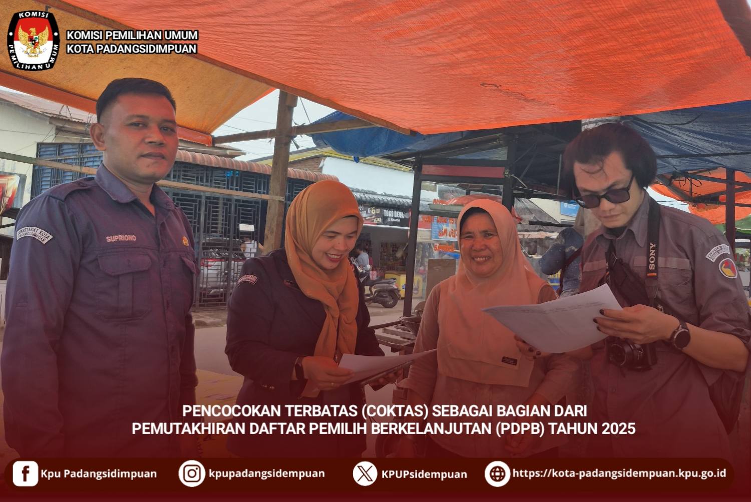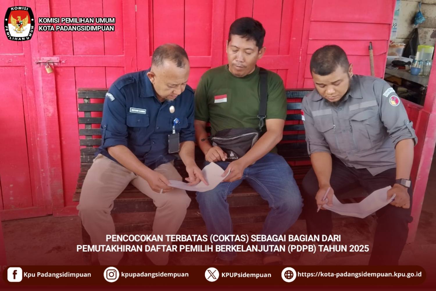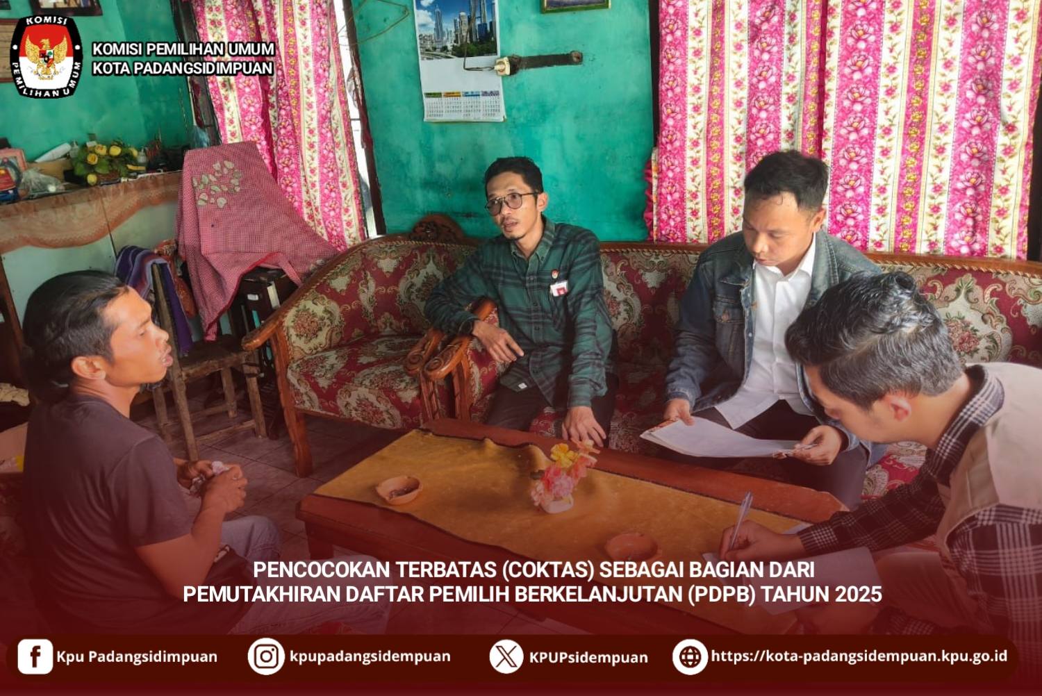 #TemanPemilih, KPU Kota Padangsidimpuan melaksanakan kegiatan Pencocokan Terbatas (COKTAS) sebagai bagian dari Pemutakhiran Daftar Pemilih Berkelanjutan (PDPB) Tahun 2025.