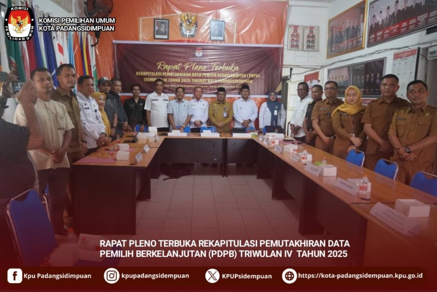 #TemanPemilih, KPU Kota Padangsidimpuan melaksanakan Rapat Pleno Terbuka Rekapitulasi Pemutakhiran Data Pemilih Berkelanjutan (PDPB) Triwulan IV di Aula Kantor KPU Kota Padangsidimpuan. Senin (08/12/2025)