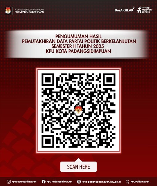 Penetapan tersebut dituangkan dalam Pengumuman KPU Kota Padangsidimpuan Nomor: 435/PL.01-PU/1277/2025. Pengumuman ini merupakan bagian dari pelaksanaan pemutakhiran data partai politik secara berkelanjutan guna memastikan kelengkapan, keakuratan, dan keterbaruan data kepesertaan partai politik.