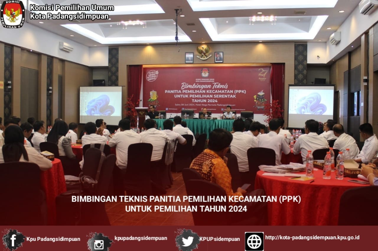 Komisi Pemilihan Umum Kota Padangsidimpuan melaksanakan Kegiatan "Bimbingan Teknis Panitia Pemilihan Kecamatan (PPK) Untuk Pemilihan Serentak Tahun 2024 pada Hari Sabtu Tanggal 08 Juni 2024 bertempat di Hotel Mega Permata Padangsidimpuan.