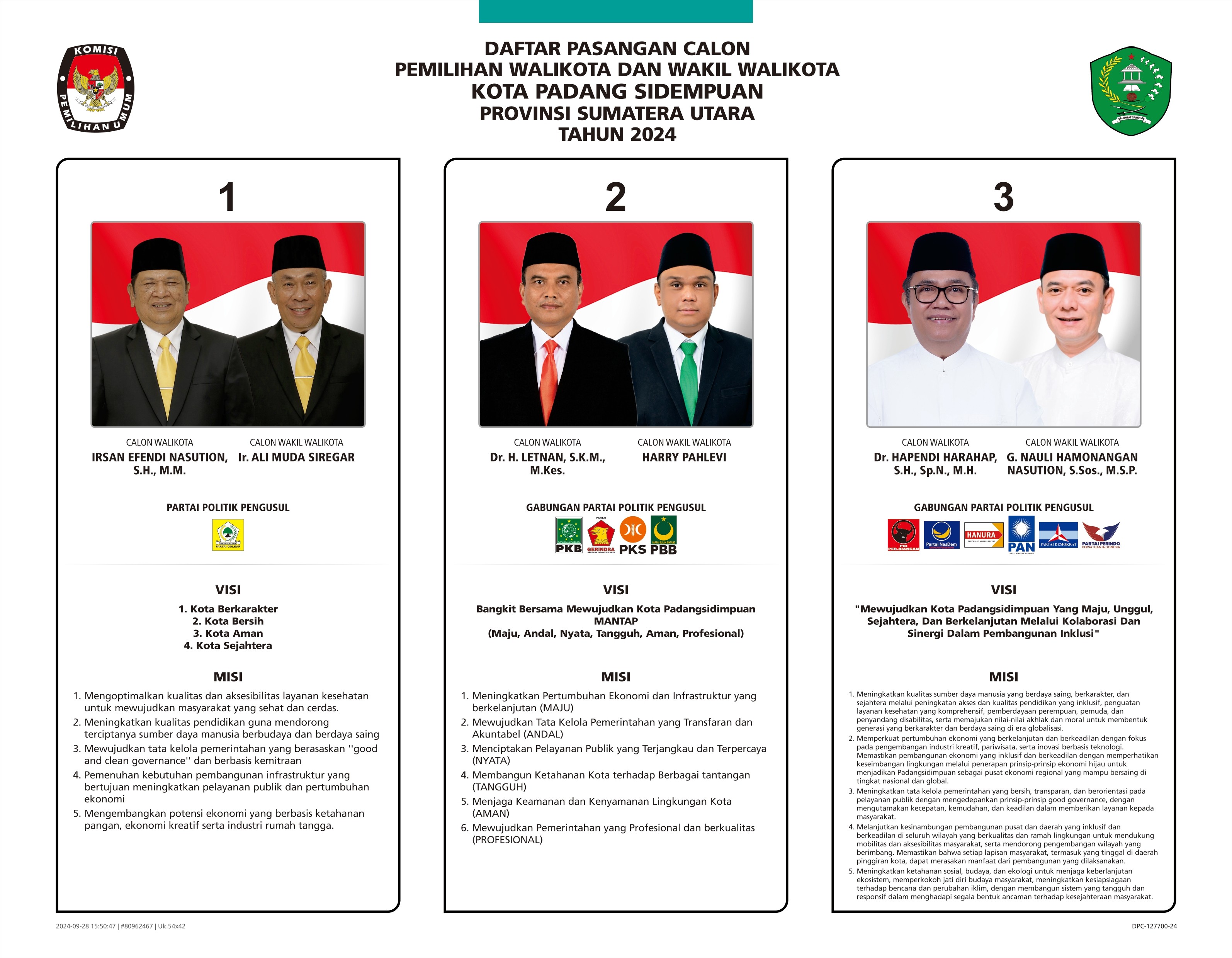 DAFTAR PASANGAN CALON PEMILIHAN WALIKOTA DAN WAKIL WALIKOTA PADANGSIDIMPUAN TAHUN 2024