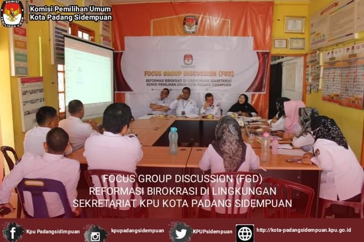 #TemanPemilih, Senin, 10 Oktober 2022 KPU Kota Padang Sidempuan melaksanakan Focus Group Discussion (FGD) Reformasi Birokrasi di Sekretariat KPU Kota Padang Sidempuan, acara dihadiri oleh Komisioner, Kasubbag, ASN dan PPNPN Sekretariat KPU Kota Padang Sidempuan.
