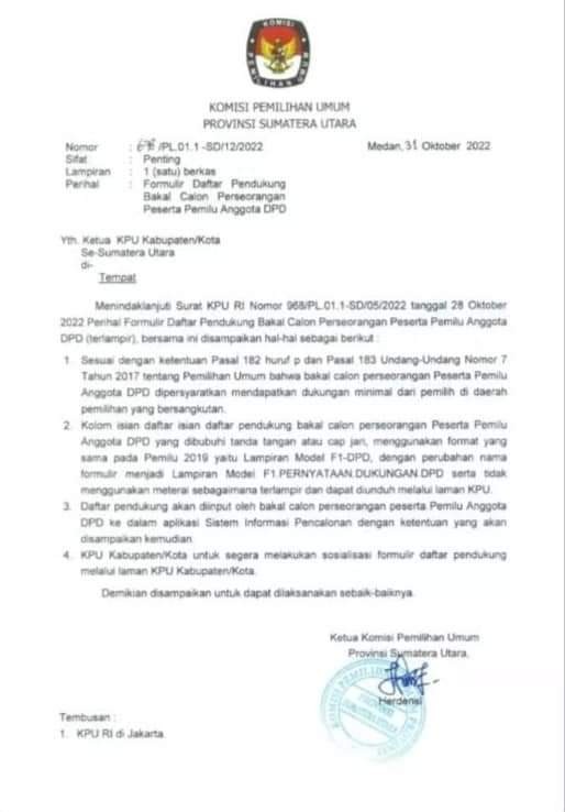 Untuk memudahkan bakal calon perseorangan Peserta Pemilu anggota DPD tahun 2024, formulir yang digunakan untuk daftar pendukung bakal calon perseorangan peserta Pemilu DPD Tahun 2024 masih menggunakan template formulir pemilu sebelumnya dengan beberapa penyesuaian, salah satunya adalah tidak dibubuhi meterai. Template formulir dapat diunduh di laman KPU, serta bisa disesuaikan atau diperbanyak sesuai dengan kebutuhan.
