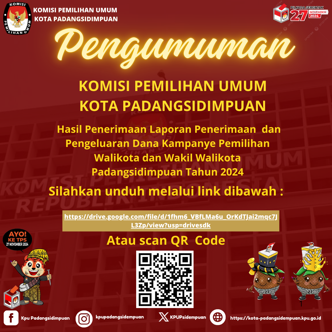 #TemanPemilih, Berikut disampaikan Pengumuman Hasil Penerimaan dan Pengeluaran Dana Kampanye Pemilihan Walikota dan Wakil Walikota Padangsidimpuan Tahun 2024.