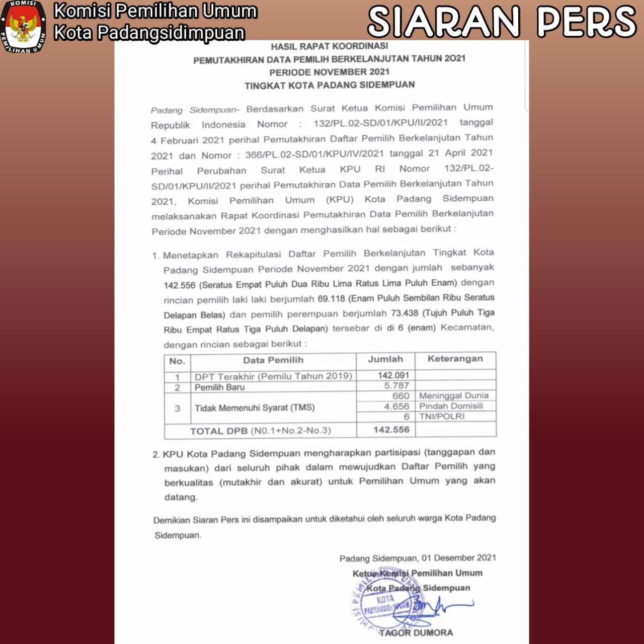 Hasil Rapat Koordinasi Pemukhtahiran Data Pemilih Berkelanjutan Tahun 2021 Periode November 2021