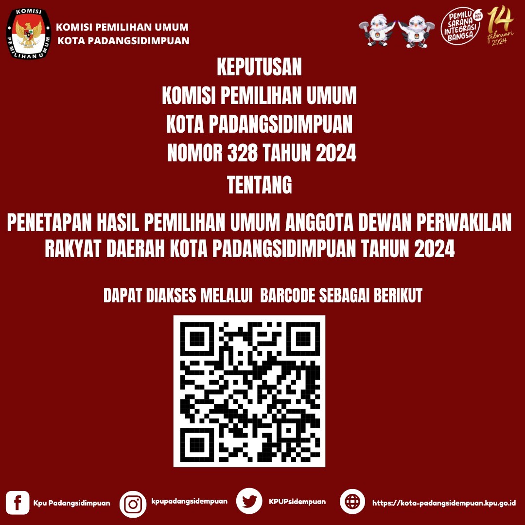 Keputusan KPU Kota Padangsidimpuan Nomor 328 tentang Penetapan Hasil Pemilihan Umum Anggota Dewan Perwakilan Rakyat Daerah Kota Padangsidimpuan Tahun 2024