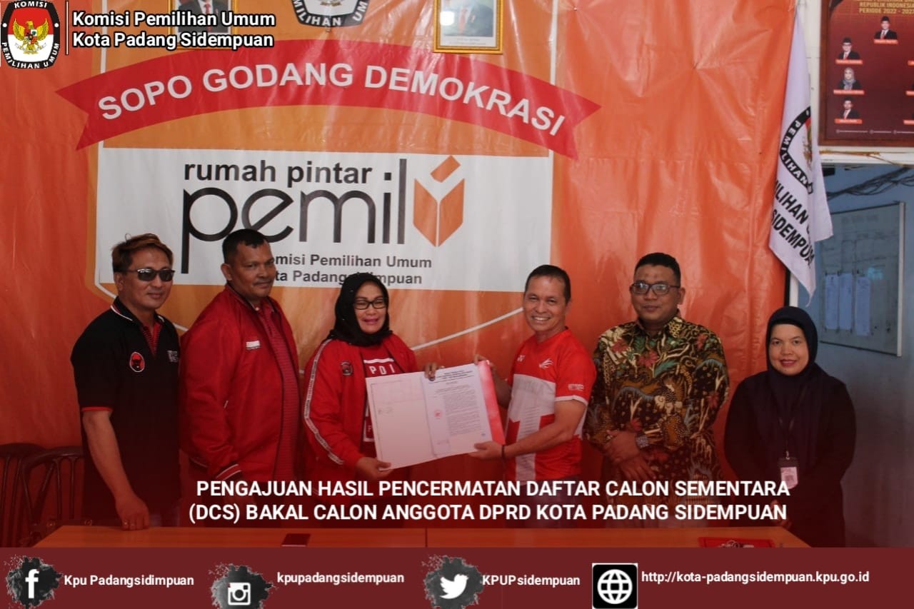 KPU Kota Padangsidimpuan menerima pengajuan pasca pencermatan Daftar Calon Sementara (DCS) dari Partai Demokrasi Indonesia Perjuangan (PDI P)