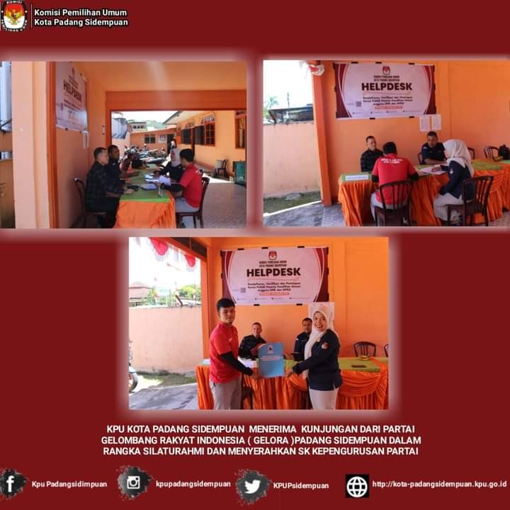 #TemanPemilih, KPU Kota Padang Sidempuan menerima kunjungan dari Partai Gelombang Rakyat Indonesia ( GELORA ) Padang Sidempuan dalam rangka silaturahmi dan menyerahkan SK Kepengurusan Partai.
