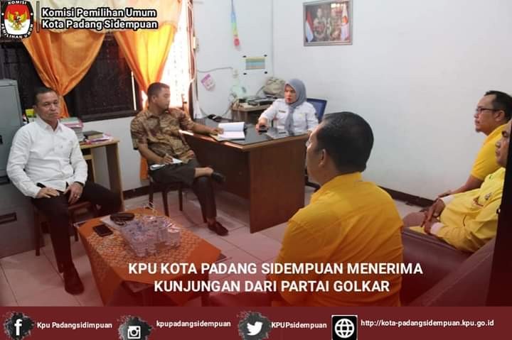 #TemanPemilih, Dalam rangka audiensi dan silaturahmi KPU Kota Padang Sidempuan menerima kunjungan dari Partai Golkar Kota Padang Sidempuan terkait Tahapan Pendaftaran, Verifikasi, dan Penetapan Partai Politik Peserta Pemilihan Umum Tahun 2024,