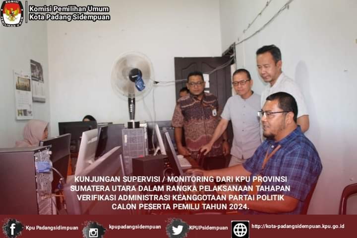 #TemanPemilih, Minggu Tanggal 28 Agustus 2022 KPU Kota Padang Sidempuan menerima Kunjungan Supervisi / Monitoring dari KPU Provinsi Sumatera Utara dalam rangka pelaksanaan Tahapan Verifikasi Administrasi Keanggotaan Partai Politik Calon Peserta Pemilu Tahun 2024.