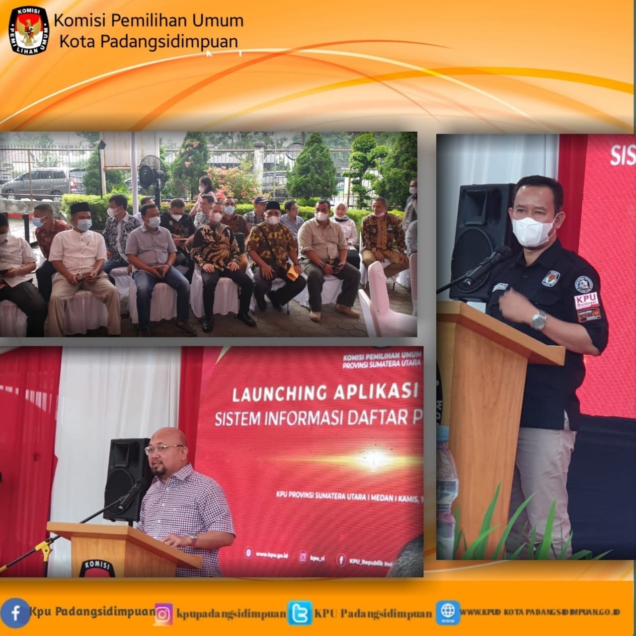 #TemanPemilih, Ketua KPU Kota Padangsidimpuan Tagor Dumora Lubis bersama Ketua Divisi Perencanaan, Data dan Informasi Afwan Hasibuan menghadiri Launching Aplikasi Alat Bantu Sistim Informasi Daftar Pemilih (SIDARLIH) di KPU Provinsi Sumatera Utara. Aplikasi Sidarlih ini untuk mempermudah pemilih mencheck apakah sudah terdaftar sebagai pemilih, perbaikan elemen data dan sekaligus melakukan pendaftaran apabila belum terdaftar sebagai pemilih. Launching Aplikasi Sidarlih ini dihadiri juga oleh Ketua KPU RI Ilham Saputera dan anggota KPU RI lainnya, Ketua dan anggota KPU Provinsi Sumatera Utara, Bawaslu Provinsi Sumatera Utara, Pimpinan Partai Politik Tingkat Sumatera Utara, Forkopimda Sumatera Utara serta Ketua dan Anggota Yang membidangi Divisi Data, Perencanaan dan Informasi KPU Kabupaten/Kota se Sumatera Utara, Medan 16 Desember 2021.