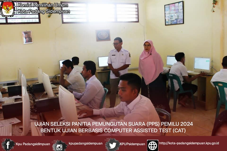 #TemanPemilih, KPU Kota Padang Sidempuan melaksanakan ujian seleksi badan adhock Panitia Pemungutan Suara (PPS) untuk Pemilu 2024 dengan bentuk ujian berbasis Computer Assisted Test (CAT) pada hari terakhir.
