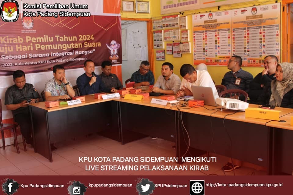#TemanPemilih, Keluarga Besar KPU Kota Padang Sidempuan bersama Forkopimda Kota Padang Sidempuan, Partai Politik Peserta Pemilu Tahun 2024 tingkat Kota Padang Sidempuan mengikuti live streaming pelaksanaan Kirab yang diselenggarakan oleh KPU RI secara serentak di delapan lokasi lainnya di seluruh wilayah Indonesia.