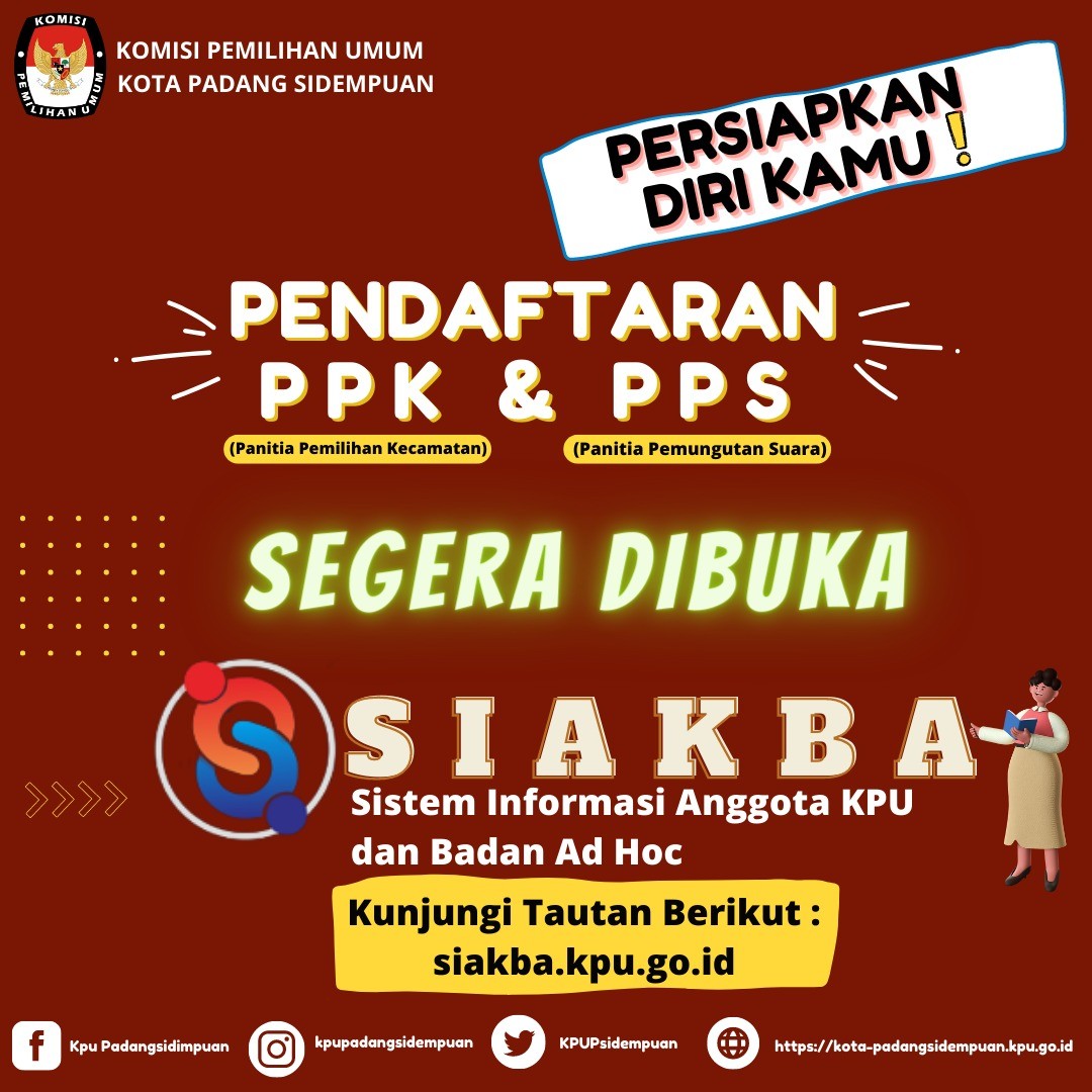 #TemanPemilih, Persiapkan diri anda! Pendaftaran PPK (Panitia Pemilihan Kecamatan) dan PPS (Panitia Pemungutan Suara) segera dibuka SIAKBA (Sistem Informasi Anggota KPU dan Badan Ad Hoc.