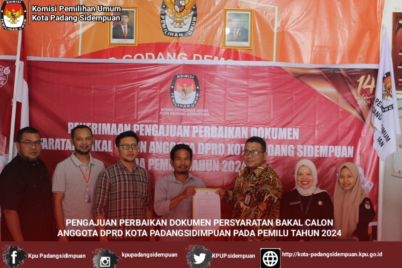 KPU Kota Padangsidimpuan menerima Pengajuan Perbaikan/Penggantian Dokumen Persyaratan Bakal Calon Anggota DPRD Kota Padangsidimpuan pada Pemilu Tahun 2024 oleh Partai Buruh Kota Padang Sidempuan.