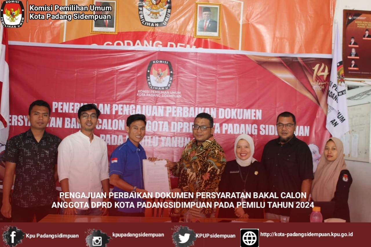 Pengajuan Perbaikan/Penggantian Dokumen Persyaratan Bakal Calon Anggota DPRD Kota Padangsidimpuan pada Pemilu Tahun 2024 oleh Partai Demokrat (PD) Kota Padang Sidempuan
