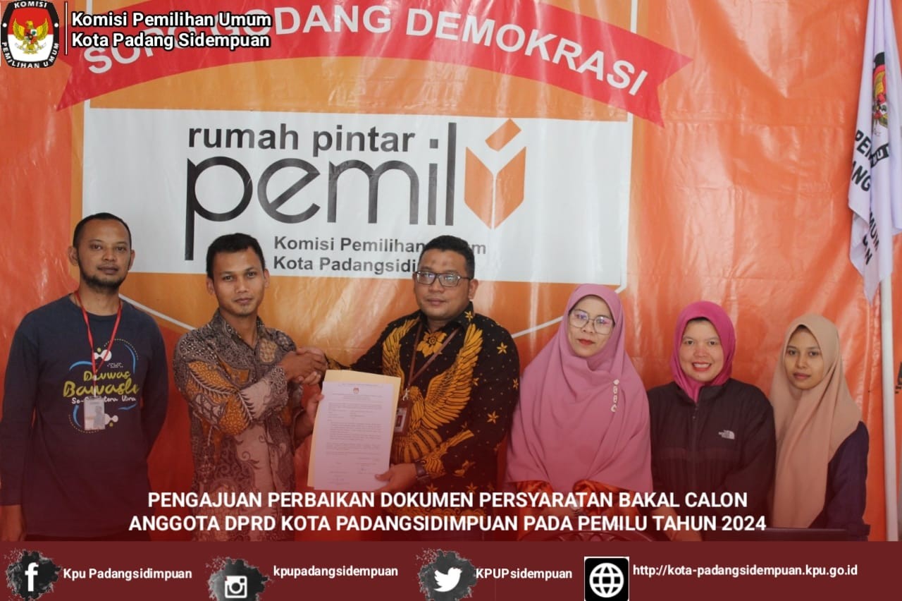 Pengajuan Perbaikan/Penggantian Dokumen Persyaratan Bakal Calon Anggota DPRD Kota Padangsidimpuan pada Pemilu Tahun 2024 oleh Partai Keadilan Sejahtera (PKS) Kota Padang Sidempuan