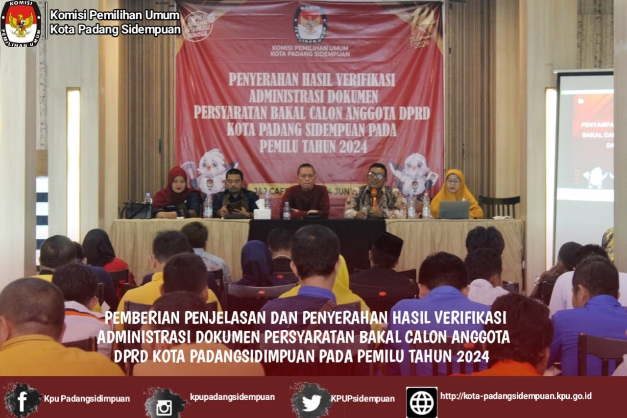 KPU Padangsidimpuan akan kembali melakukan verifikasi administrasi berkas bacaleg pada 10 Juli hingga 6 Agustus 2023. Dan jika memenuhi syarat