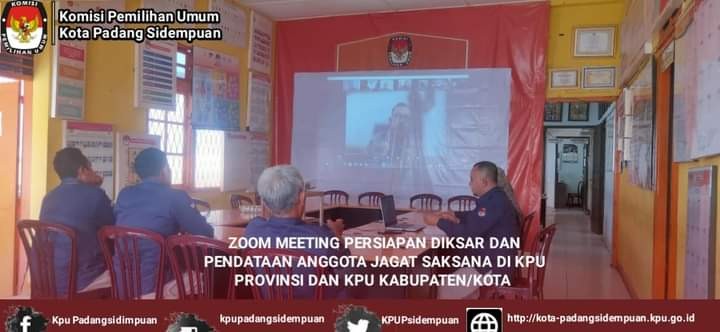 #TemanPemilih, Sekretaris KPU Kota Padang Sidempuan Deka Ria Murti Lubis bersama Kasubbag Hukum dan SDM Sahlan Basri, Kasubbag Umum Sutan dan PAMDAL Jagat Saksana KPU Kota Padang Sidempuan mengikuti zoom meeting dengan topic : Persiapan Diksar dan Pendataan Anggota Jagat Saksana di KPU Provinsi dan KPU Kabupaten/Kota yang diselenggarakan oleh KPU RI pada hari Selasa, 30 Agustus 2022