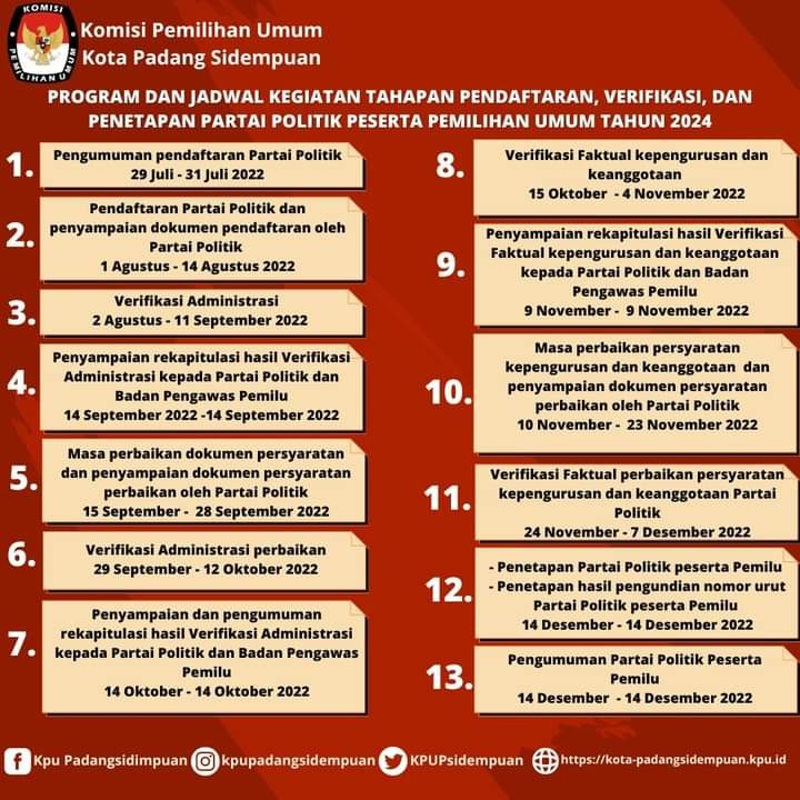 #TemanPemilih, Berikut Program dan Jadwal Kegiatan Tahapan Pendaftaran, Verifikasi dan Penetapan Partai Politik Peserta Pemilihan Umum Tahun 2024 .