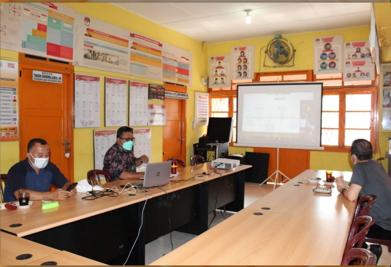 Komisi Pemilihan Umum Kota Padangsidimpuan mengikuti acara Webinar Zoom Rakor Evaluasi Pemungutan dan Penghitungan Suara Tahun 2020. Rabu, 24 November 2021 yang dihadiri Ketua KPU Kota Padangsidimpuan Tagor Dumora, Divisi Teknis Penyelenggaraan Fadlyka Himmah Syahputera Harahap dan Kasubbag Teknis Hupmas Sutan.