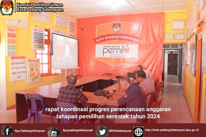 #TemanPemilih, Ketua KPU Kota Padang Sidempuan Tagor Dumora Lubis, Divisi Perencanaan, Data dan Informasi Afwan Hasibuan, Sekretaris Deka Ria Murti Lubis, Kasubbag Keuangan, Umum dan Logistik Sutan, Kasubbag Perencanaan, Data dan Informasi Suryani Ramlah Siregar, mengikuti Rapat Koordinasi Progres Perencanaan Anggaran Tahapan Pemilihan Serentak Tahun 2024 yang dilaksanakan secara daring pada hari Selasa, 9 Agustus 2022.