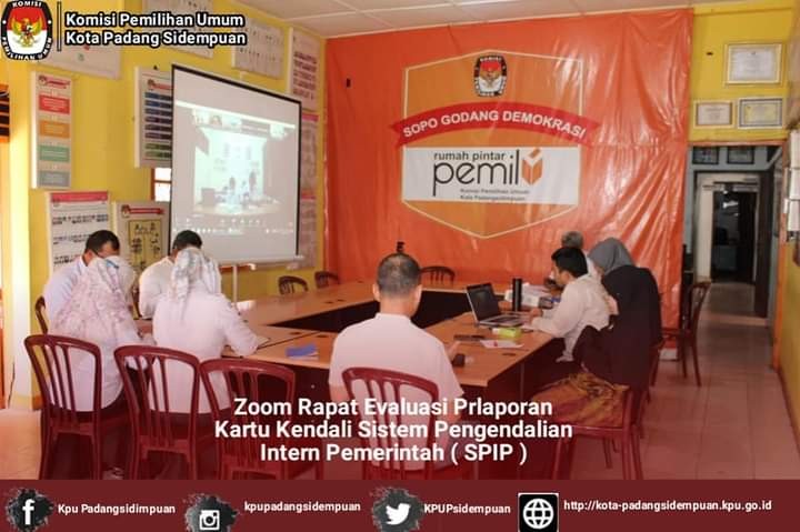 #TemanPemilih, Dalam rangka pelaksanaan sistem pengendalian intern pemerintah secara efektif dan efisien, Ketua KPU Kota Padang Sidempuan Tagor Dumora Lubis, SH, Ketua Divisi Hukum dan Pengawasan Ahmad Rasid, S.Pd, Ketua Divisi Teknis Penyelenggaraan Fadlyka Himmah Syahputera Harahap, SE.I, ME, Ketua Divisi Sosialisasi, Pendidikan Pemilih, Partisipasi Masyarakat dan SDM Dr. Nurhamidah Pulungan, SE, S.Pd, MM, Ketua Divisi Perencanaan Data dan Informasi Afwan Hasibuan, S.Ag, Sekretaris KPU Kota Padang Sidempuan Deka Ria Murti Lubis, SH, Kasubbag Teknis Annur Rasyidah Siregar, S. Pt, Kasubbag Hukum dan Pengawasan Sahlan Basri, SH, Kasubbag Umum Sutan, SP, Kasubbag Perencanaan Data dan Informasi Suryani Ramlah Siregar, SE, mengikuti Rapat Evaluasi Pelaporan Kartu Kendali Sistem Pengendalian Intern Pemerintah (SPIP )