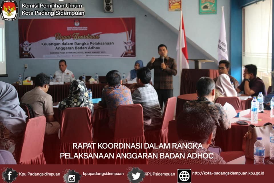 #TemanPemilih, KPU Kota Padang Sidempuan melaksanakan Rapat Koordinasi Dalam Rangka Pelaksanaan Anggaran Badan Adhoc yang dilaksanakan di Nadira Fizza Sitamiang Hotel, Kamis 09 Maret 2023.