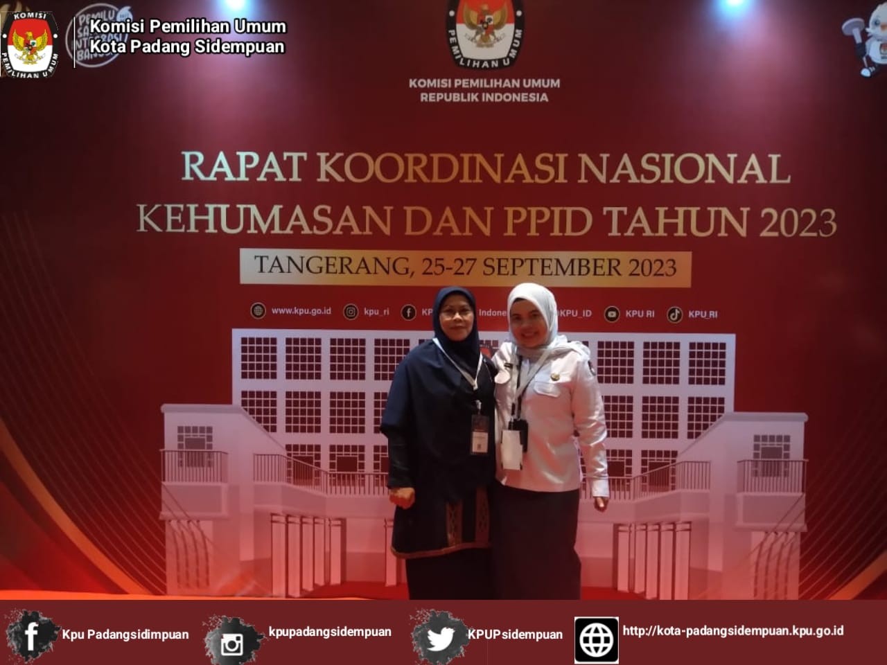 #TemanPemilih, Dalam rangka optimalisasi pelayanan dan pengelolaan informasi publik serta peningkatan peran kehumasan pada pemilu tahun 2024, Anggota KPU Kota Padangsidimpuan Divisi Sosialisasi Pendidikan Pemilih, Partisipasi Masyarakat dan Sumber Daya Manusia Nurhamidah Pulungan bersama Kasubbag Teknis Annur Rasyidah Siregar mengikuti Rapat Koordinasi Nasional Kehumasan dan PPID Tahun 2023 di Hotel Novotel Tangerang tanggal 25-27 September 2023.
