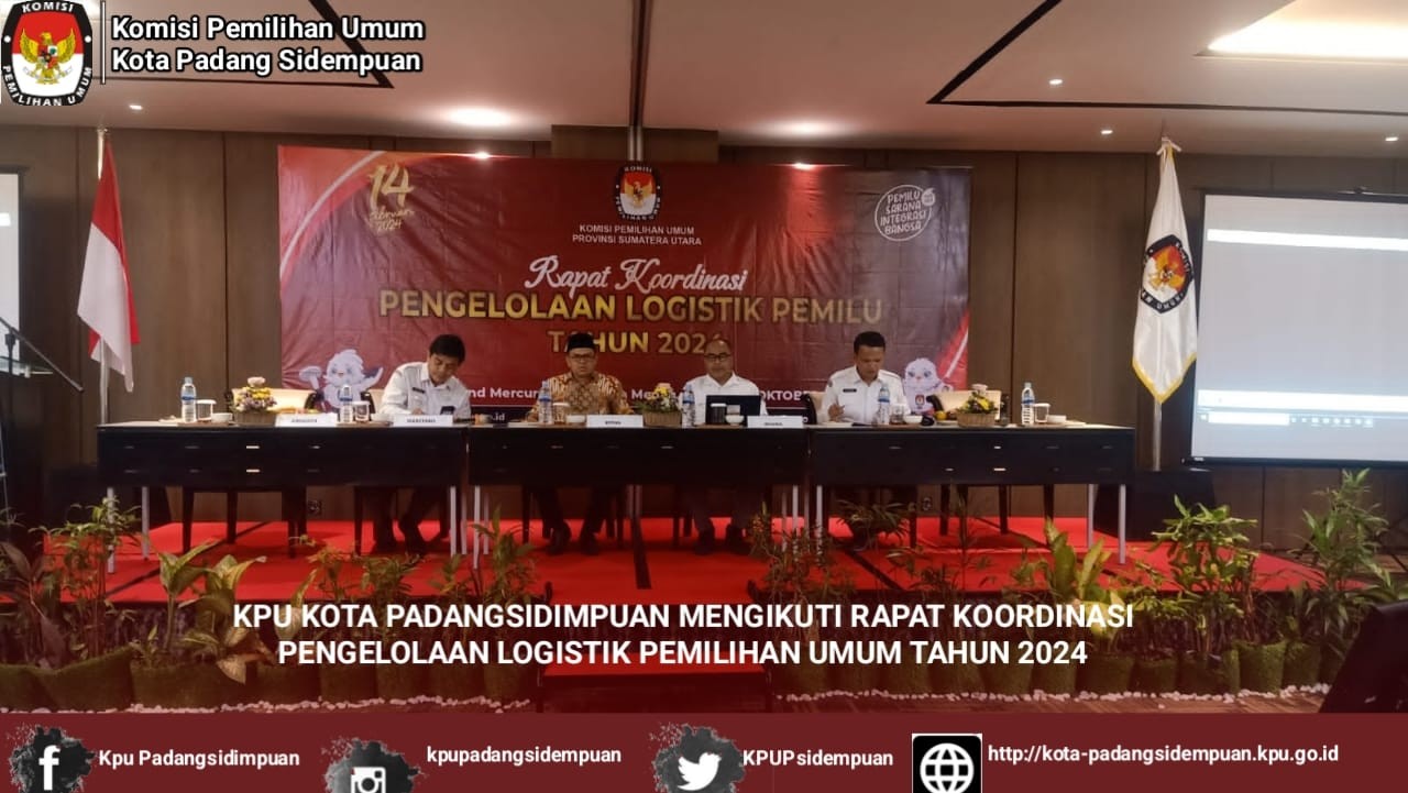 #TemanPemilih, Ketua KPU Kota Padangsidimpuan Tagor Dumora bersama Sekretaris Deka Ria Murti Lubis mengikuti Rapat Koordinasi Pengelolaan Logistik Pemilihan Umum Tahun 2024. Rapat Koordinasi Pengelolaan Logistik Pemilihan Umum Tahun 2024 ini dihadiri oleh : Ketua dan Anggota KPU Provinsi Sumatera Ketua, Sekretaris KPU Provinsi Sumatera Utara beserta jajaran, Ketua KPU Kabupaten/Kota se Provinsi Sumatera Utara dan Sekretaris KPU Kabupaten/Kota se Provinsi Sumatera Utara. Logistik Pemilu merupakan salah satu komponen penting pada Pelaksanaan Pemilu 2024, Oleh karenanya Pengelolaan Logistik Pemilu harus dikelola secara optimal baik pada tahap perencanaan, penganggaran, pengadaan dan pendistribusiannya dengan mempedomani prinsip tepat waktu, tepat jumlah, tepat kualitas, tepat sasaran, tepat jenis, efisien dan efektif, Hotel Grand Mercure Medan 5 Oktober 2023.