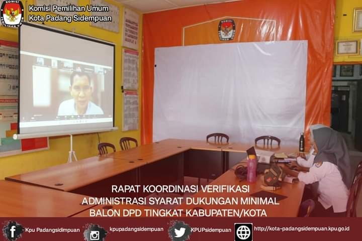 #TemanPemilih, Ketua Divisi Teknis Penyelenggaraan KPU Kota Padang Sidempuan Fadlyka Himmah Syahputera Harahap bersama Kasubbag Teknis Penyelenggara Pemilu KPU Kota Padang Sidempuan Annur Rasyidah Siregar dan Operator Silon DPD KPU Kota Padang Sidempuan Maimunah mengikuti Rapat Koordinasi Verifikasi Administrasi Syarat dukungan minimal Balon DPD Tingkat Kabupaten/Kota secara daring yang dilaksanakan oleh KPU Provinsi Sumatera Utara pada hari Kamis, 05 Januari 2023.