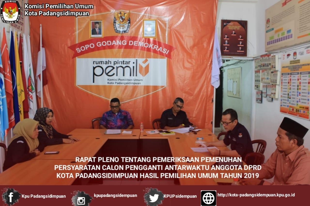 Rapat Pleno tentang Pemeriksaan Pemenuhan Persyaratan Calon Pengganti Antarwaktu Anggota DPRD Kota Padangsidimpuan Hasil Pemilihan Umum Tahun 2019