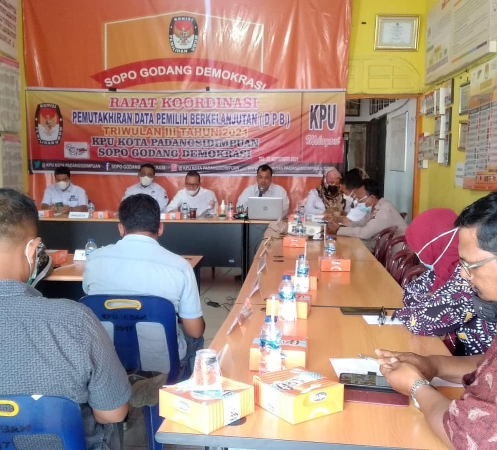 Kamis, 30 September 2021, Bertempat di Aula Sopo Godang Demokrasi KPU Padangsidimpuan, KPU Padangsidimpuan melaksanakan Rapat Koordinasi triwulan ke-III periode September 2021, terkait pemutakhiran data pemilih berkelanjutan (DPB) untuk Pemilu serentak tahun 2024.