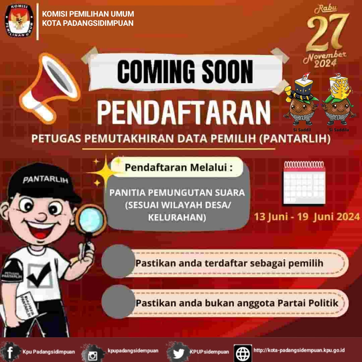 Brikut kami informasikan Time Line Pendaftaran Petugas Pemutakhiran Data Pemilih (PPDP) Pemilihan Gubernur dan Wakil Gubernur, Walikota dan Wakil Walikota Tahun 2024.