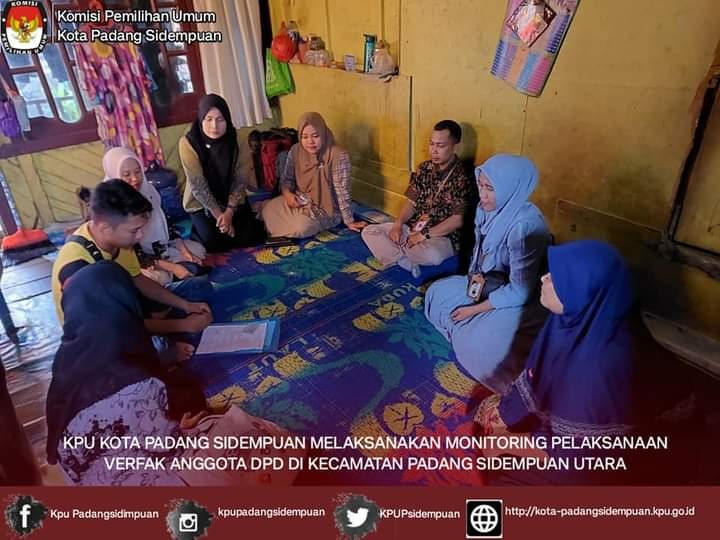 #TemanPemilih, KPU Kota Padang Sidempuan menyerahkan lembar kerja dan melakukan monitoring pelaksanaan Verifikasi Faktual Syarat Dukungan Minimal Pemilih Bakal Calon Anggota DPD Daerah Pemilihan Provinsi Sumatera Utara Pada Pemilu Tahun 2024 di Kecamatan Padang Sidempuan Utara didampingi oleh Pengawas Kelurahan/Desa (PKD) wilayah kerja masing-masing.