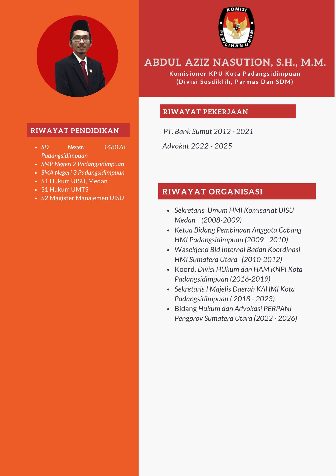 PROFIL ANGGOTA KPU KOTA PADANGSIDIMPUAN PERIODE 2023 - 2028